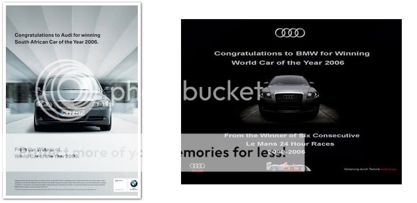 Всё уже! Я представляю себе настроения в рекламном отделе Ауди - сначала супер-пупер находка "небоимся никого, даже волка самого, на бэха, обломись, кидай свои гнилые отмазы.."