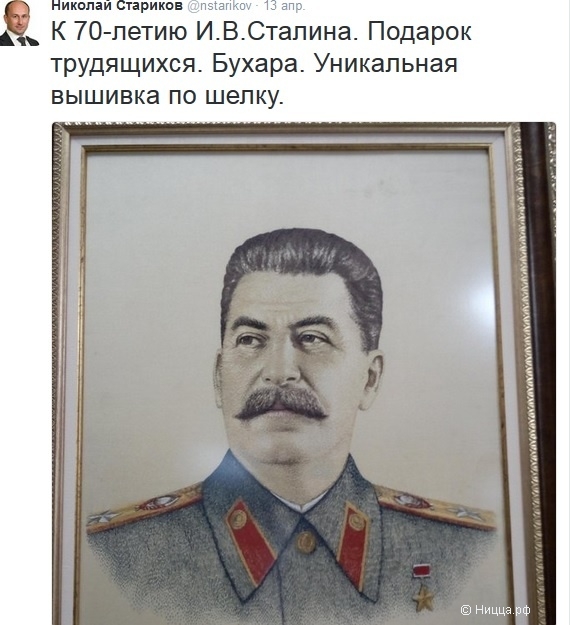 Тонко троллит, дескать восхищается вышивкой, но на самом то деле понятно куда направлен этот луч, заразный. Сталин наше всё! Mad