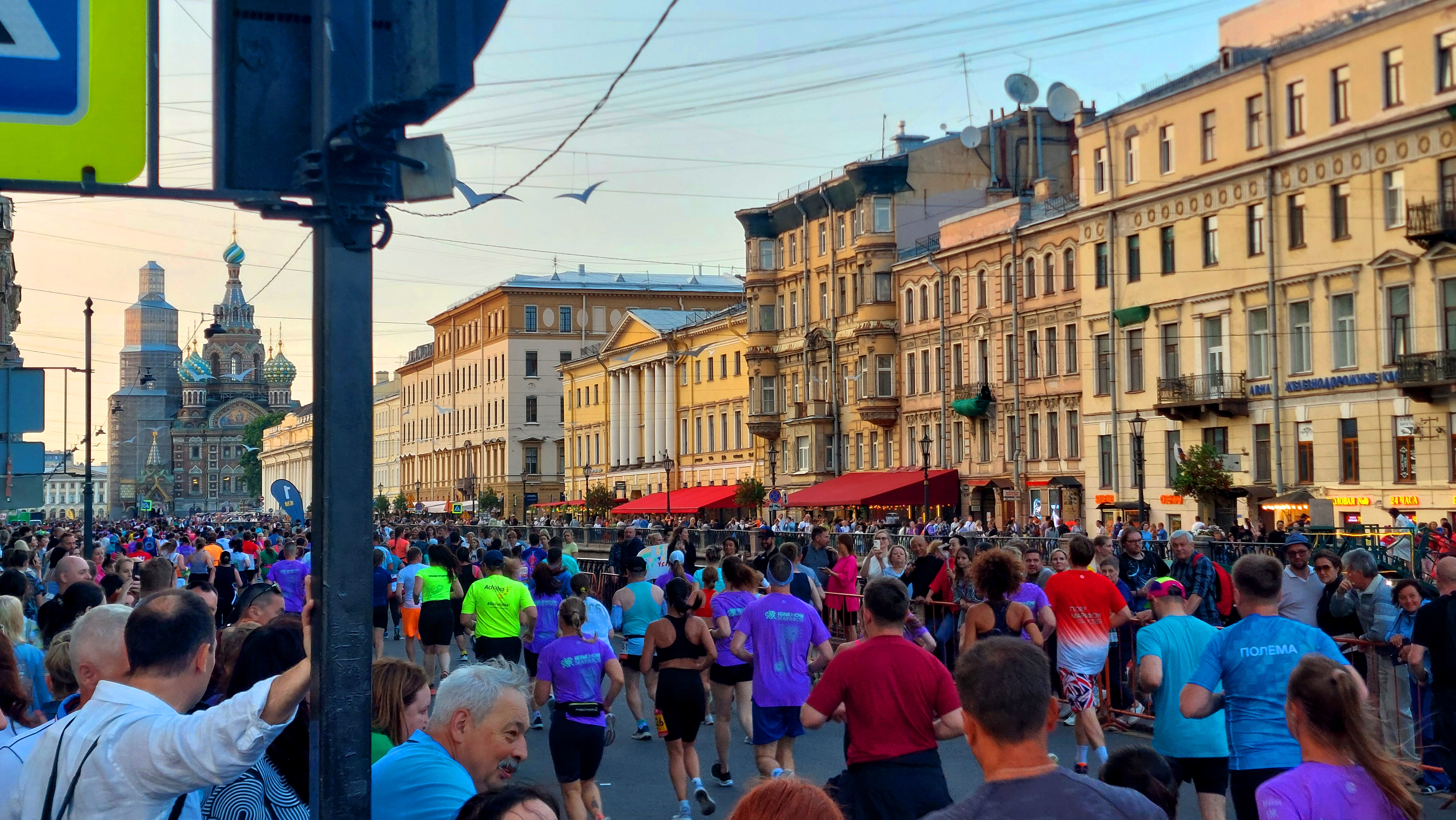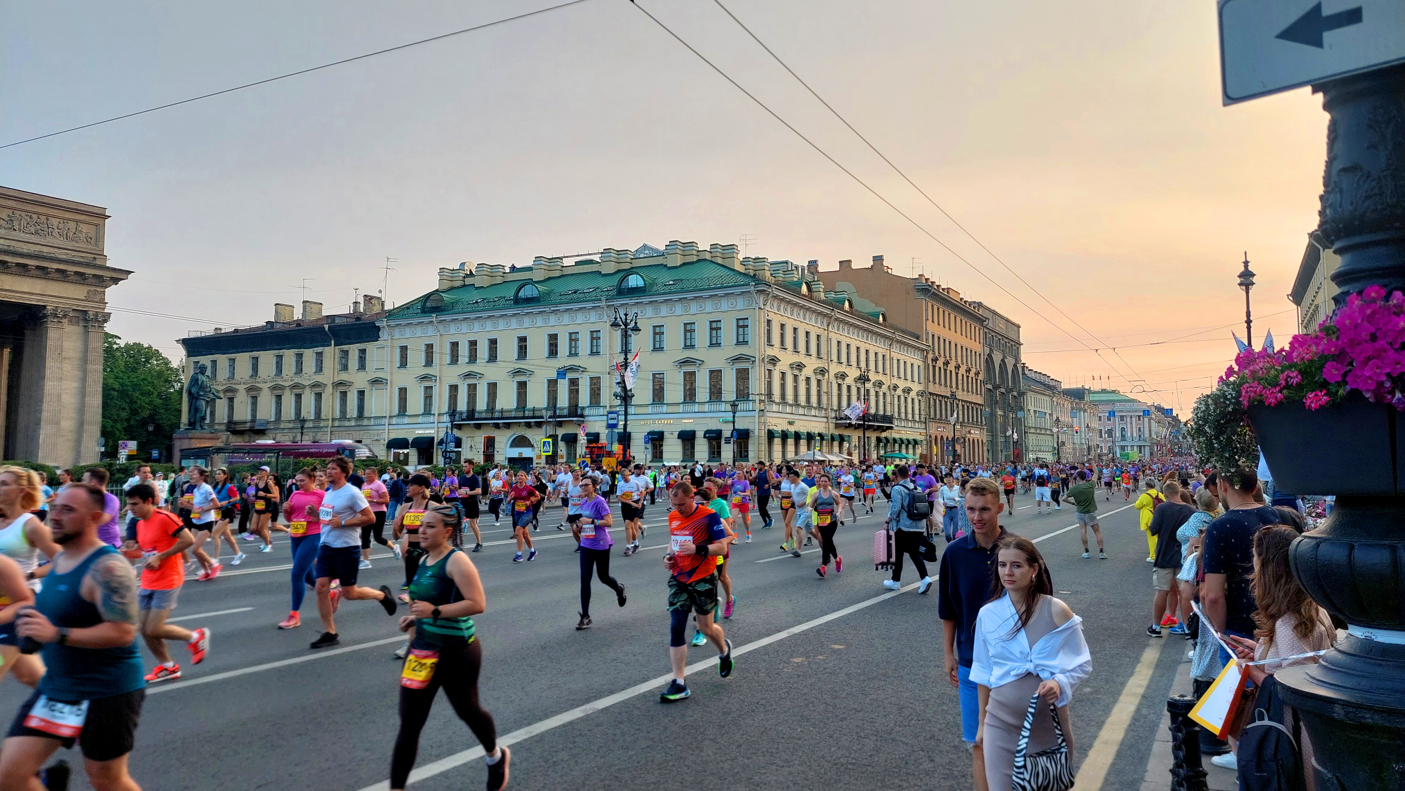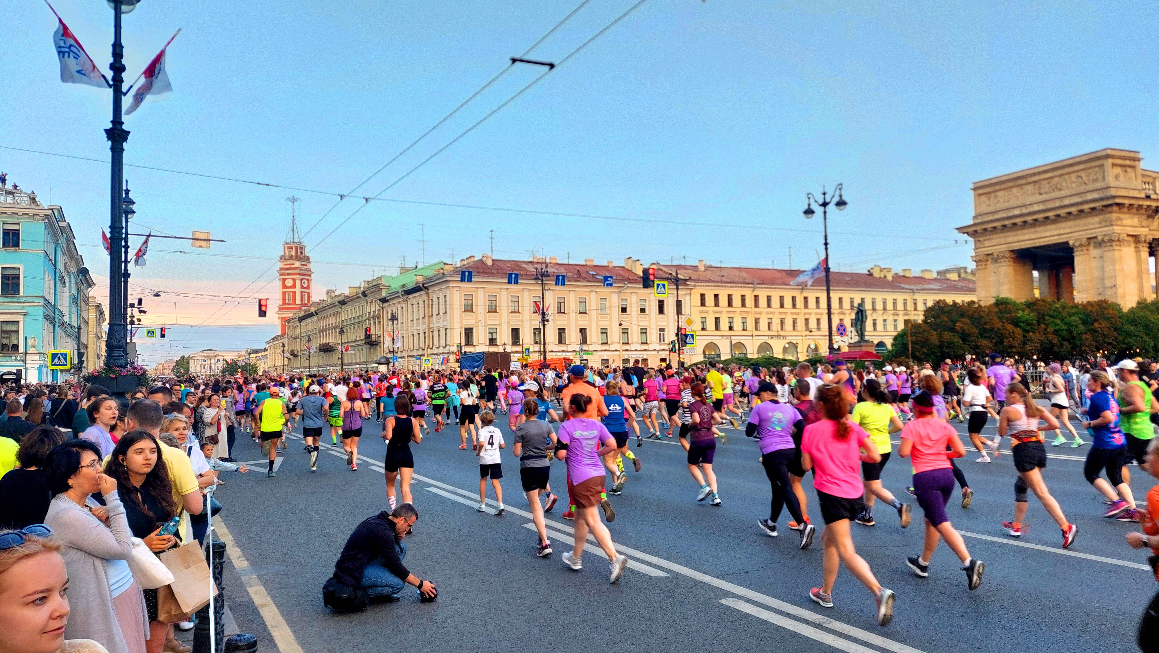 Бегущие люди - участники марафона "Белые ночи 2024"