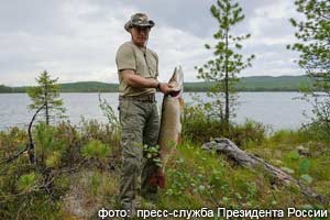 Во время уик-энда российское руководство совершило прогулку на катере по озерам Тувы и порыбачило на реке Урбун − притоке Енисея. Путин поймал на спиннинг 21-килограммовую щуку, из которой потом сделали котлеты". (С)