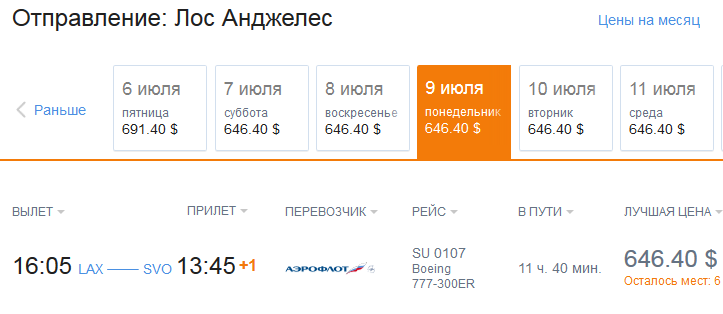Лос-Анджелес - Москва, 1 взрослый билет, эконом класс, KLM vs Aeroflot.